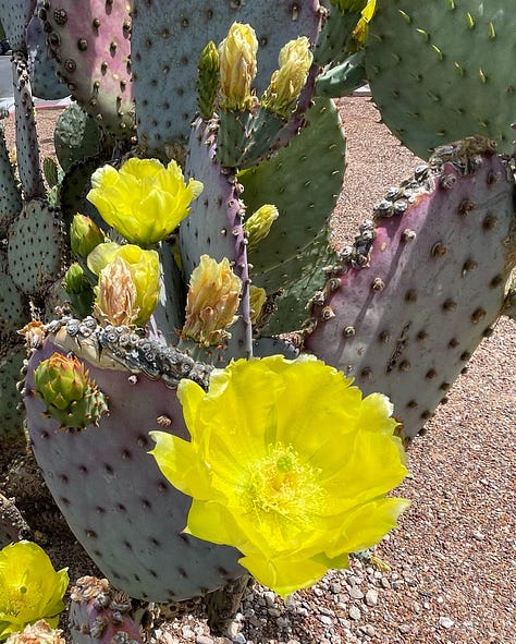 Where I had just been in southern Arizona (variously on the lands of the O’odham, the Chiricahua Apache, and the Ópata), spring is sun-centered: the lengthening daylight so clearly leading to higher temperatures, the sparse flowers opening up to receive the light each day and then curling themselves up again at night for warmth. It’s the dry season there, months away from the rains that will come in mid-summer.
